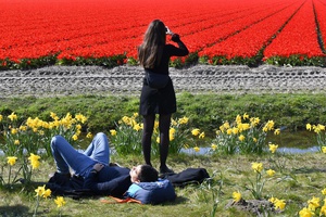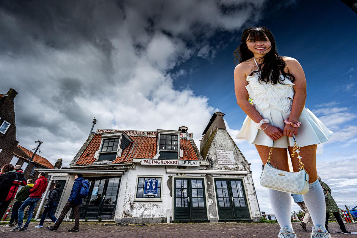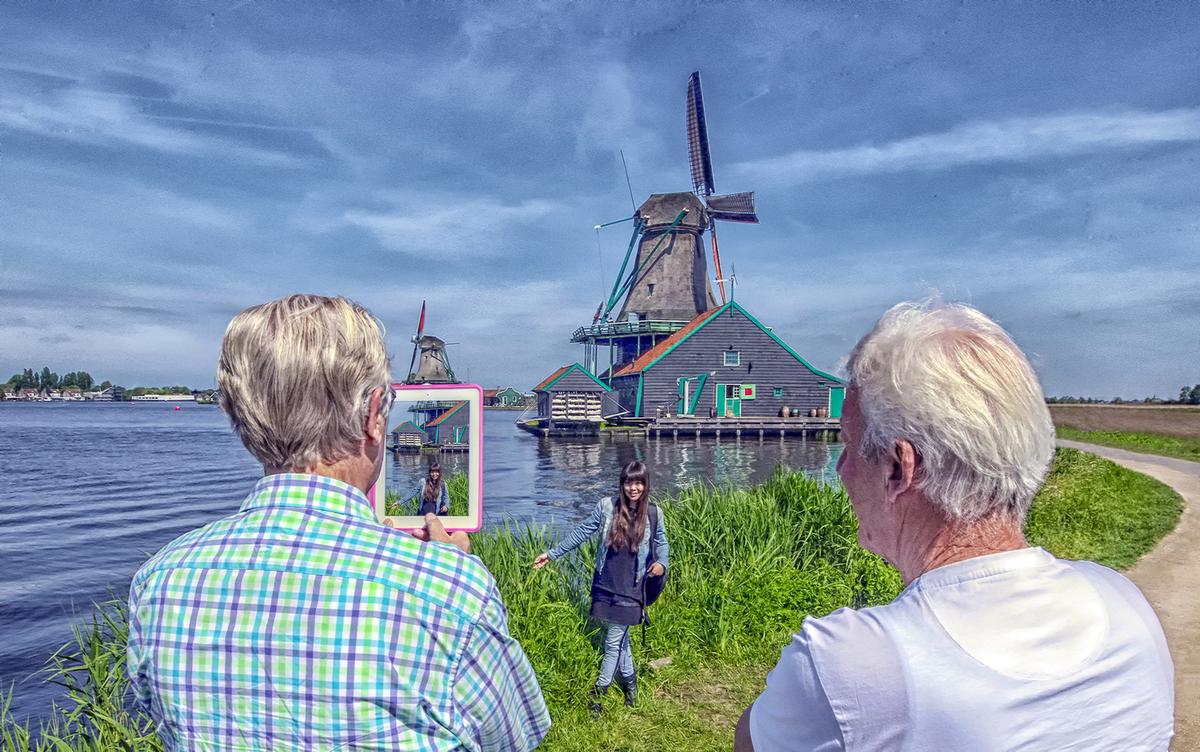 #68492 toeristje kijken op de zaanse schans