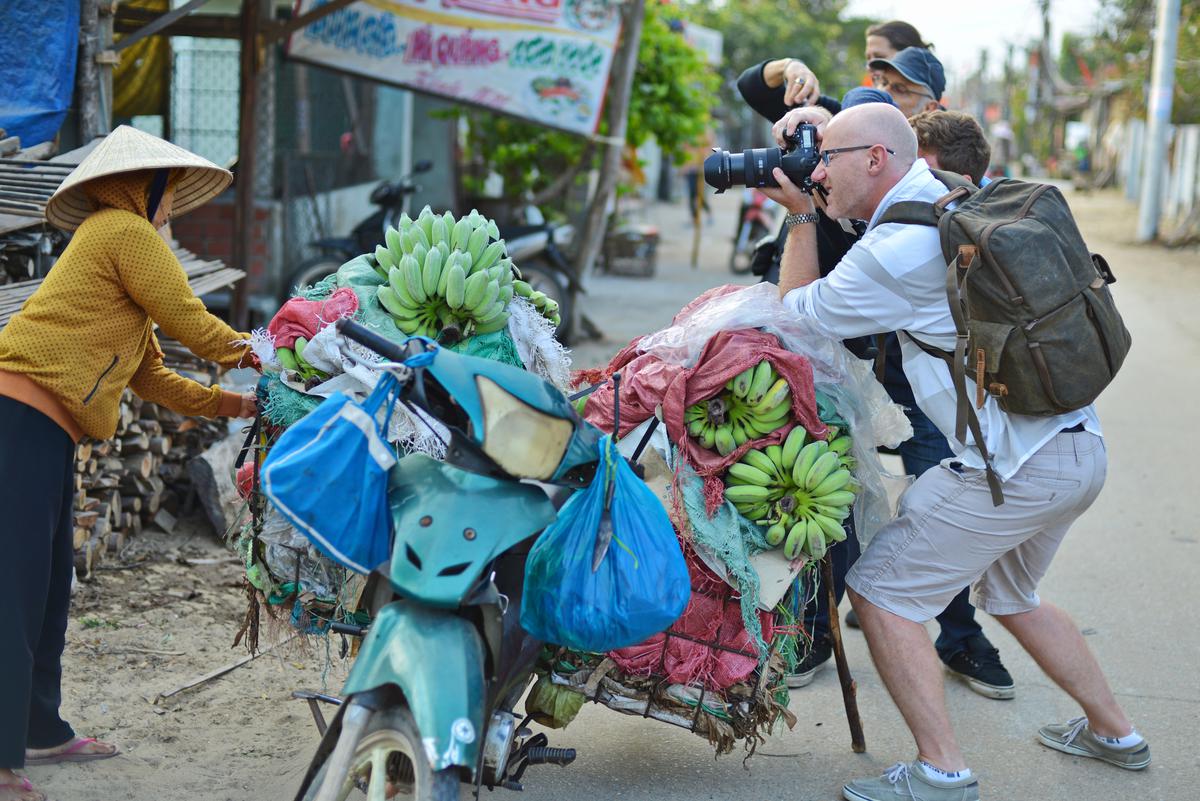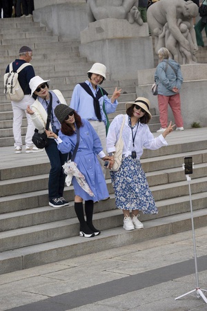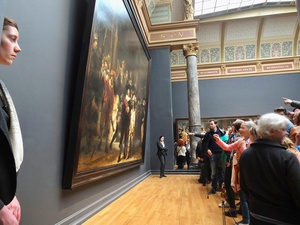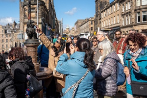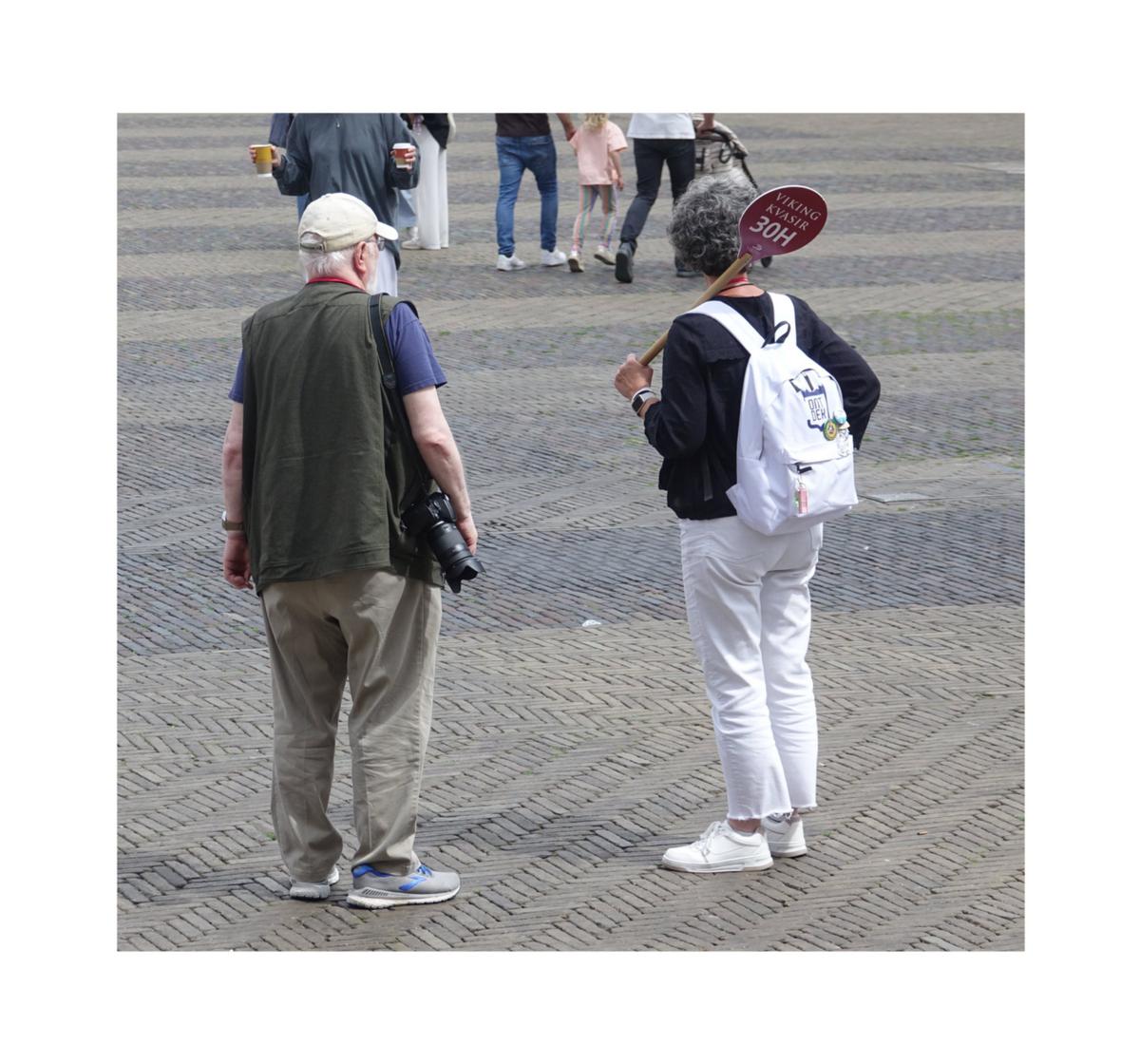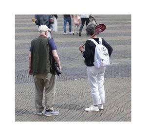 Annelies Neuteboom: In de meeste foto’s is de toerist zelf in de hoofdrol geplaatst en niet als een in-de-weg-loper. Museumbezoekers en toeristen met camera’s overheersten. Rolkoffers, selfiesticks, wildlife, afrikakindjes en humor ontbraken niet. Helaas moest ik een aantal van mijn darlings (zwartwit foto’s, esthetische museumfoto’s) ‘killen’. De 5 foto’s die ik gekozen heb representeren voor mij belangrijke thema’s: -het massatoerisme, waarbij de toerist tot overlast kan zijn voor de omgeving en zichzelf, -de clichétoerist met gidsje en overvol van indrukken, -de fotograferende en de gefotografeerde toeristen. Mijn nummer 1 zijn de Schotten, als beeld van de toerist die zelf ook een bezienswaardigheid is.