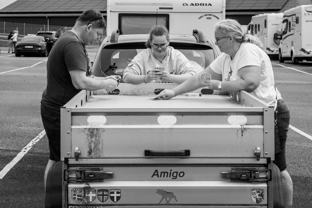 #68641 De tijd doden met een kaartspel voor vertrek boot