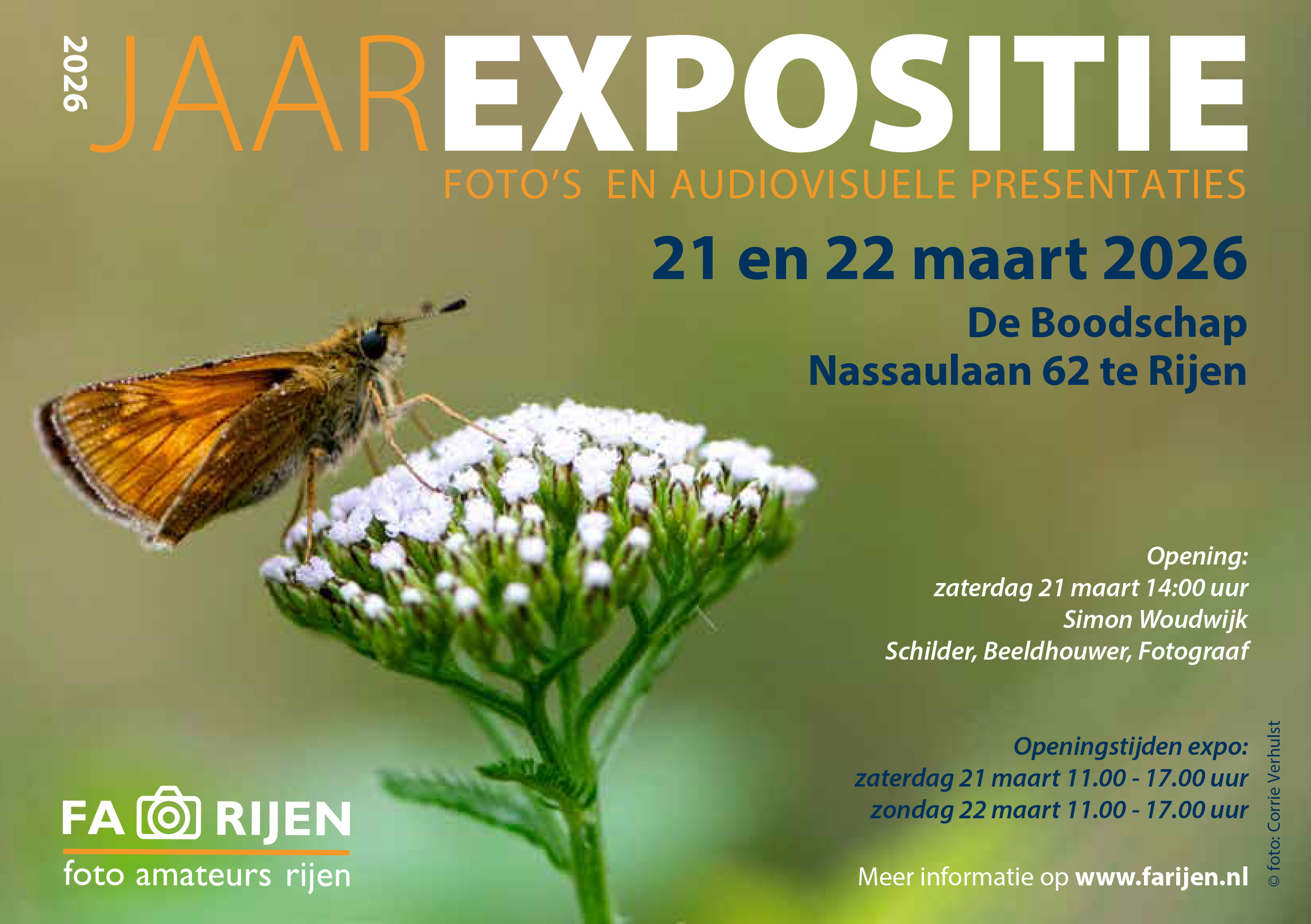 De jaarlijkse expositie van FA Rijen zal vanaf dit jaar niet meer in juni plaats vinden maar in maart. In het weekend van 21 en 22 maart 2026 tonen de leden hun recente fotowerk en audiovisuele producties.