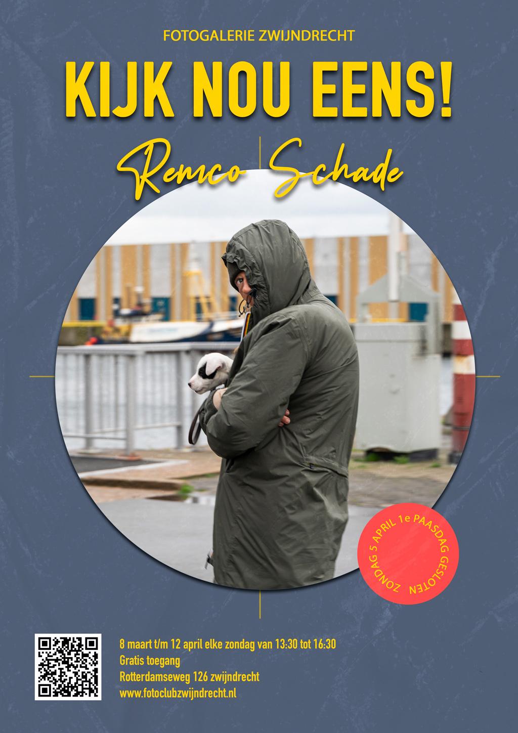 Remco is sinds 2009 lid van Fotoclub Zwijndrecht en dit wordt alweer zijn vierde expositie in de fotogalerie. Remco is een zeer productief fotograaf en het fotowerk dat te zien zal zijn is ook niet ouder dan vijf jaar. Bij zijn vorige expositie sprak hij nog van: “fotograferen zonder vooropgezet plan”. Dat is langzamerhand veranderd, zegt hij: “Mijn onderwerpen en thematiek blijven hetzelfde, maar ik ga er meer en meer bewust naar opzoek”. Je zou zo ook de titel van de expositie, Kijk nou eens!, kunnen verklaren. Hij wijst ons daarmee op zaken die wij in eerste instantie niet zien of als zo alledaags ervaren dat we ze negeren. Zijn thema is te omschrijven als de mens in de maakbare omgeving, vaak met een ironische ondertoon. Wie goed naar de foto’s kijkt, ziet misschien wel dat de mens een steeds ruimer begrip wordt. Want naast werkelijke personen zien we zien op de foto’s bijvoorbeeld regelmatig stadsduiven, kantoorplanten en bewakingscamera’s figureren. Vast en zeker metaforen voor de mens. Dat in combinatie met een goed gevoel voor compositie en uitstekend technisch vakmanschap maakt de foto’s compleet.